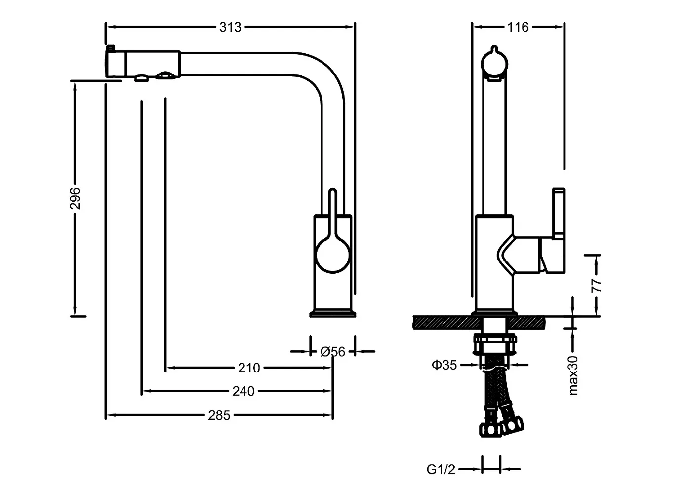 | Фильтрация воды | Совмещенный излив для фильтра |