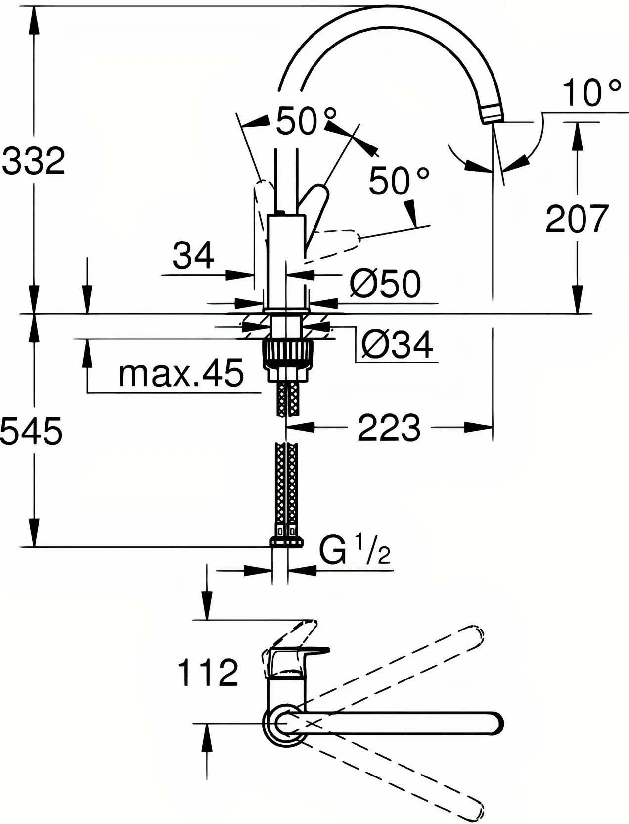 Дополнительная информация | для установки на столешницу толщиной от 60 мм необходим крепеж 48384000 (приобретается отдельно), радиус угла поворота излива 360° |