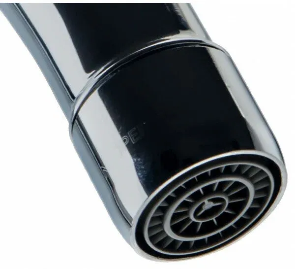 Функция экономии расхода включает специальный аэратор, который смешивает воздух с водой, образуя мягкий и плотный поток. Это позволяет сэкономить до 50% воды по сравнению с обычными смесителями, при сохранении достаточной мощности и комфорта струи.