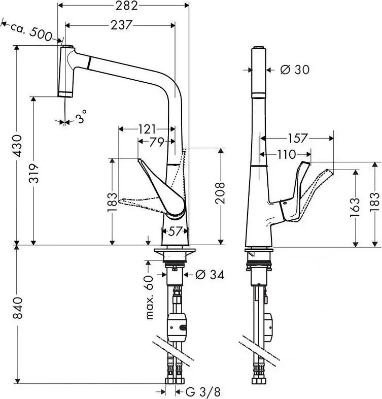 Стандарт подводки | 3/8 |