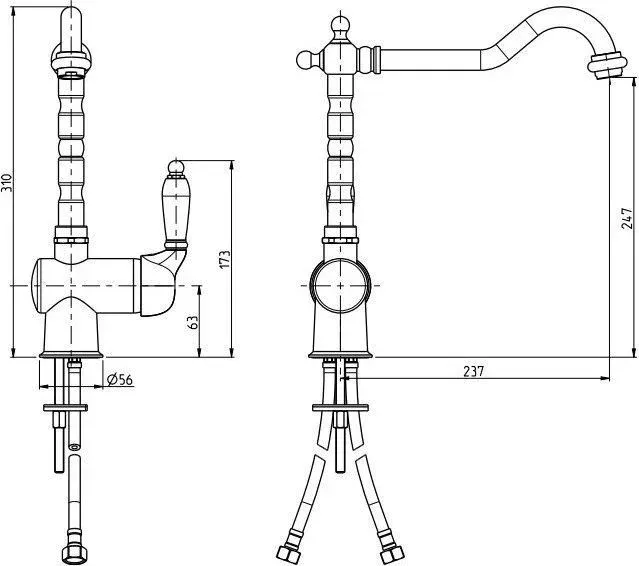 Комплект поставки: смеситель, аэратор, гибкая подводка, крепления