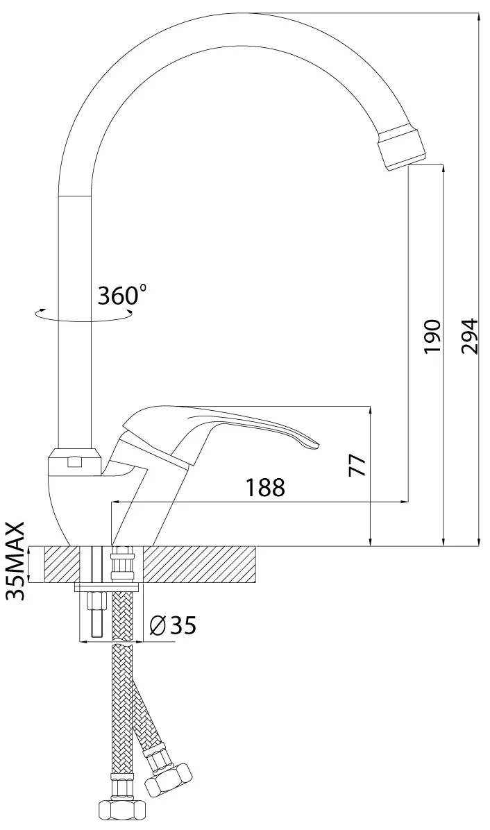 Смеситель Rossinka A A35-23 для кухонной мойки