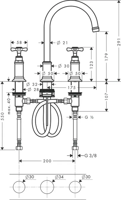 Смеситель Axor Montreux 16513000 для раковины с донным клапаном