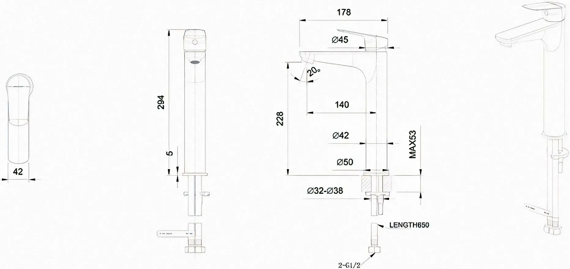 Смеситель Bravat Rhein F1429564BW-A-ENG для раковины-чаши