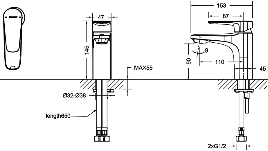 Смеситель Bravat Source Black F1173218BW-ENG для раковины