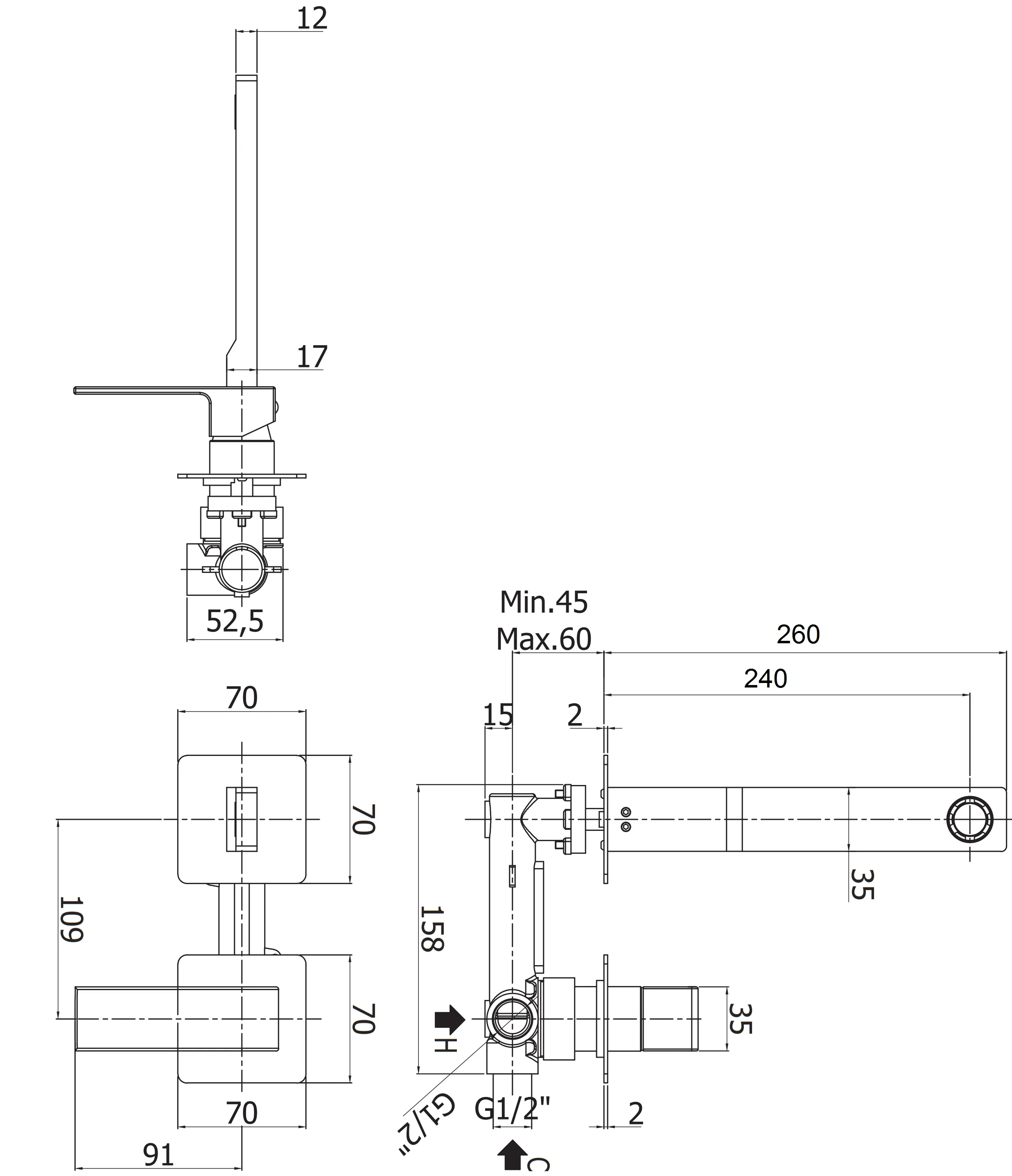 Смеситель Cezares Effect EFFECT-BLI2-24-01 для раковины с внутренней частью
