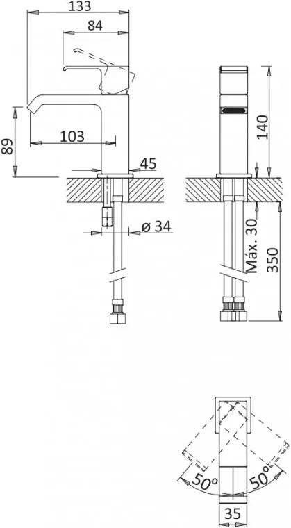 | Вращение излива | Фиксированный |