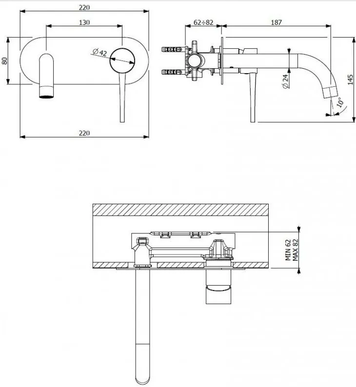 Смеситель Cezares Tink TINK-BLI1-01 для раковины с внутренней частью
