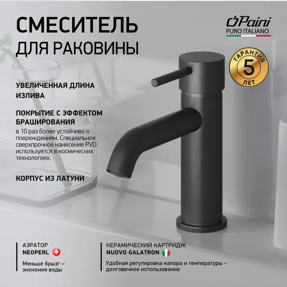 Компания Paini была основана в Италии в 1954 году. За полувековую историю небольшая мастерская выросла до международного лидера по производству смесителей. Сегодня сантехнической оборудование Paini выпускается на заводе общей площадью 76 000 кв. м, а годовой оборот компании достигает 4 млн единиц товаров. Благодаря нанесению на корпус высокотехнологичного PVD покрытия смесители отличаются хорошим запасом стойкости к внешним воздействиям. Над созданием премиум-коллекций Paini работает арт-директор, архитектор и режиссер Mirko Bosio.