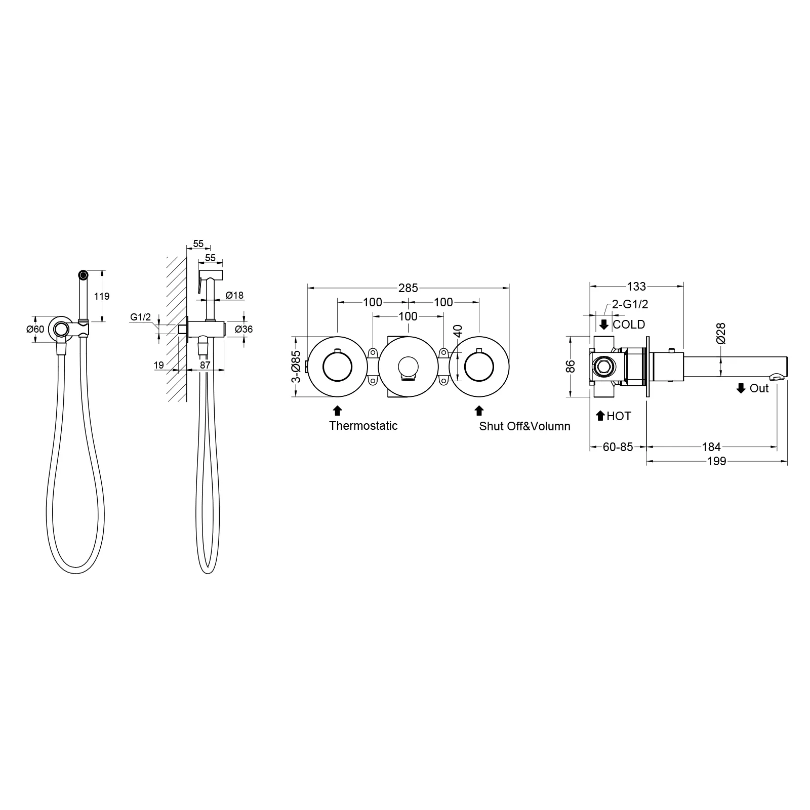 | Оснащение | смеситель / жесткая подводка / гигиенический душ |
