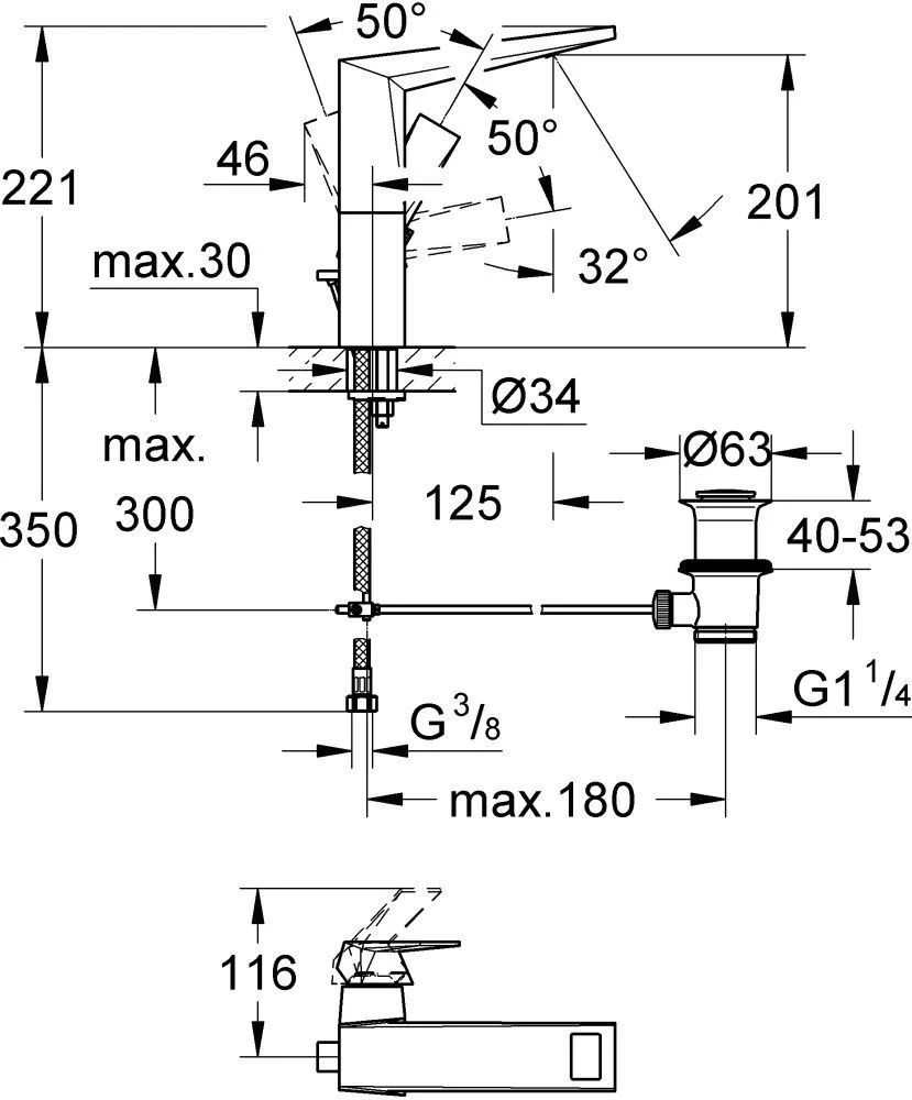 Смеситель Grohe Allure Brilliant 23109000 для раковины с донным клапаном