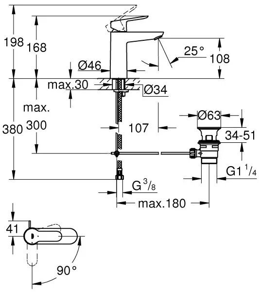 Смеситель Grohe BauEdge 23759000 для раковины с донным клапаном