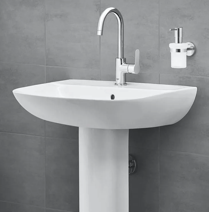Уже была другая сантехника из серии BauFlow. Поэтому выбрал этот с такой же ручкой. Поставил на раковину от икеа. Все устраивает.