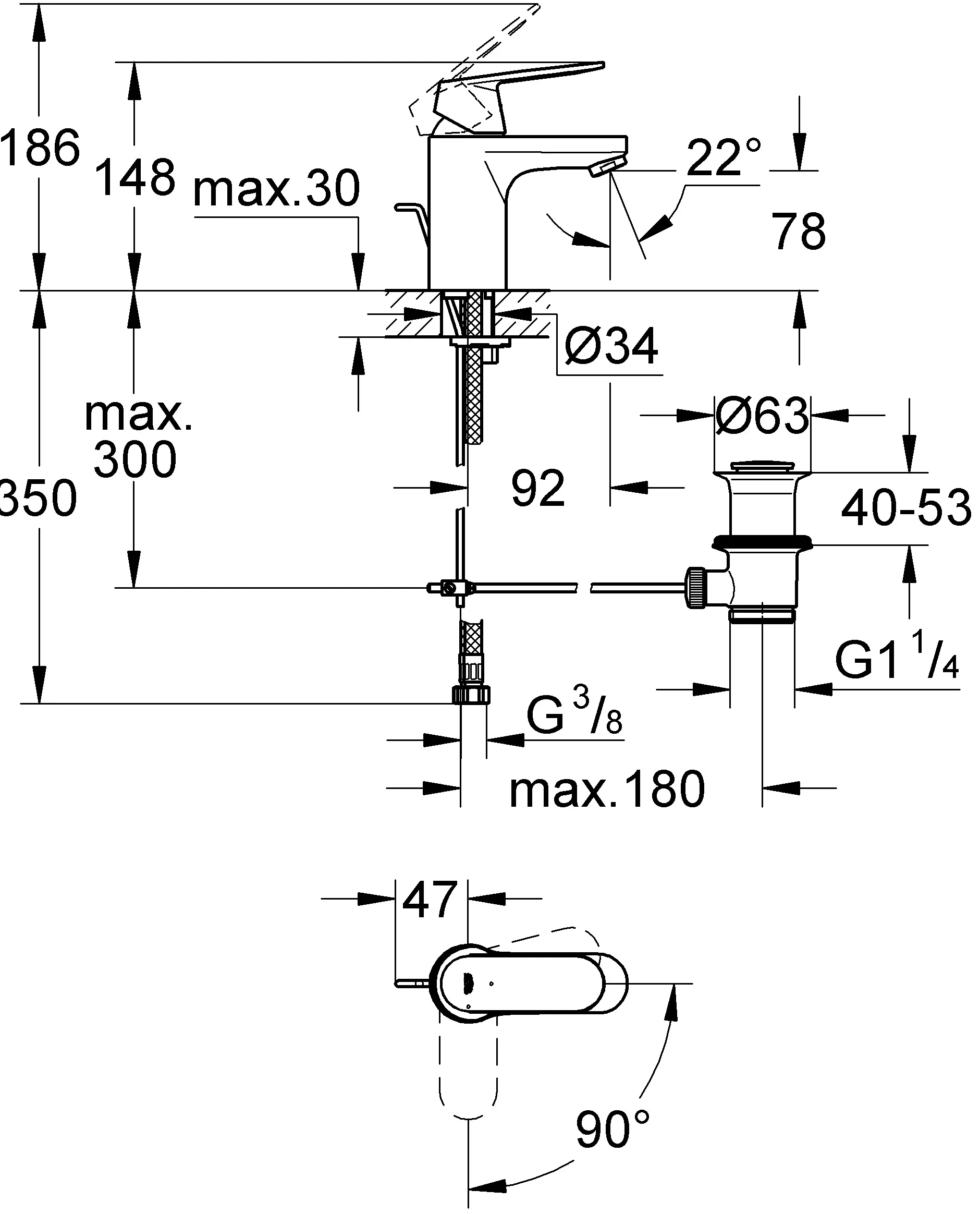 Смеситель Grohe Eurosmart Cosmopolitan 2337700E для раковины с донным клапаном