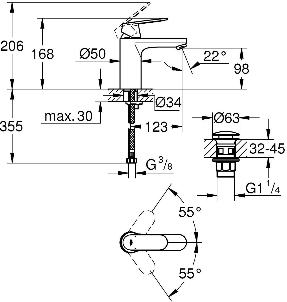 Смеситель Grohe Eurosmart Cosmopolitan 23926000 для раковины с донным клапаном