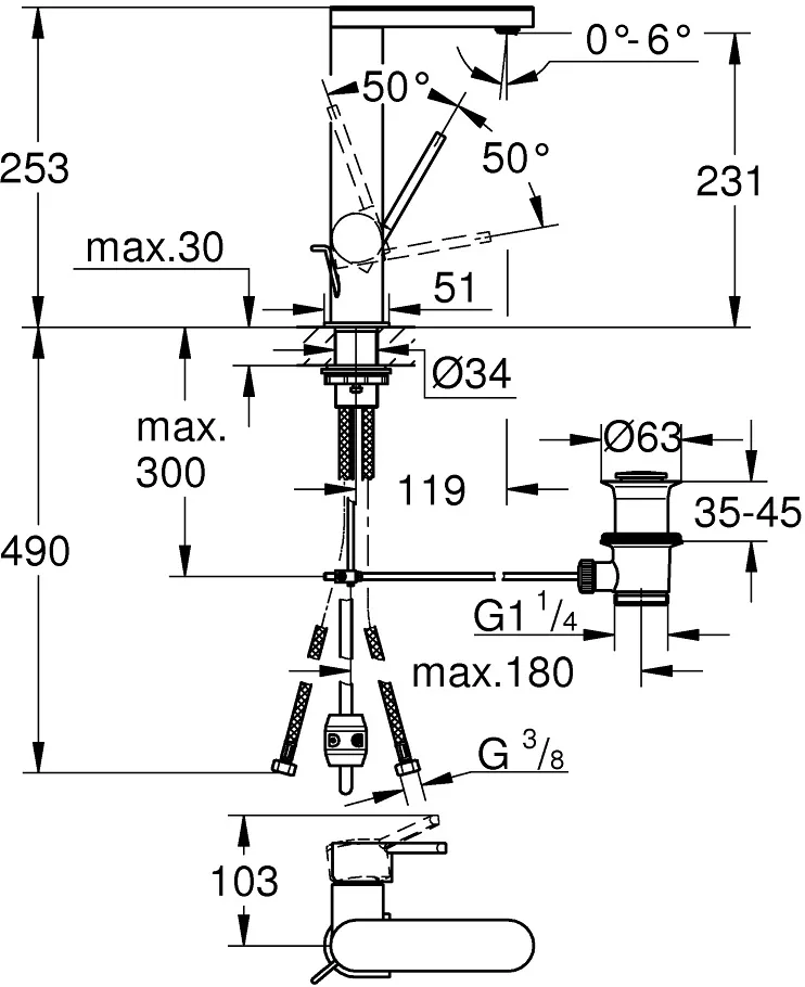 Смеситель Grohe Plus 23843DC3 для раковины с донным клапаном