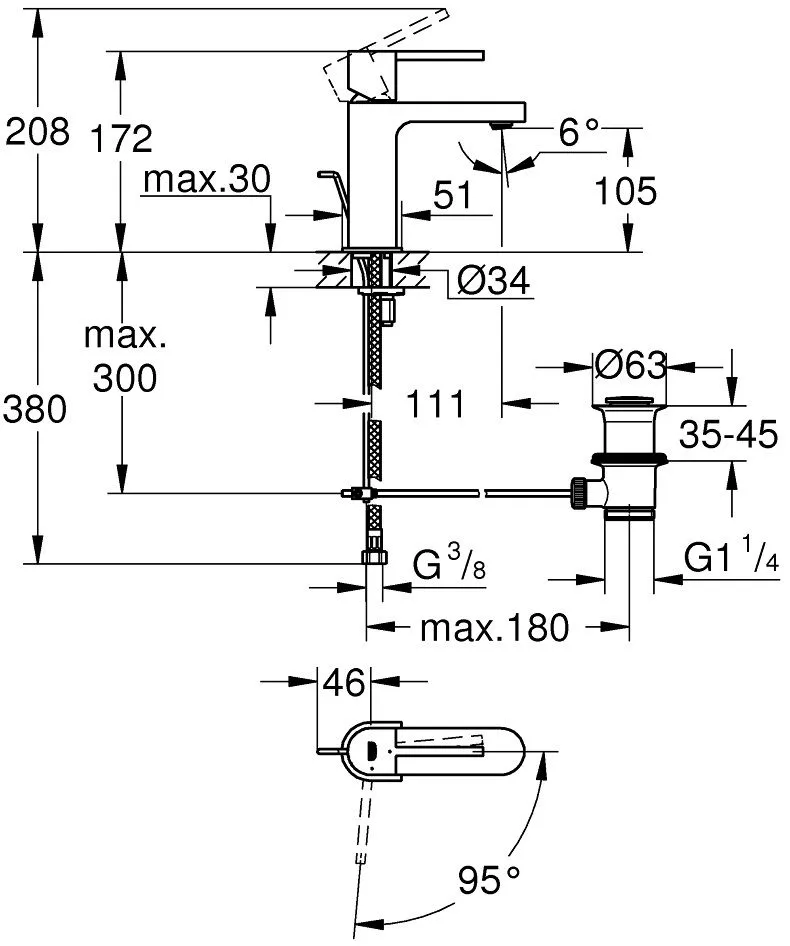 Смеситель Grohe Plus 23870003 для раковины с донным клапаном