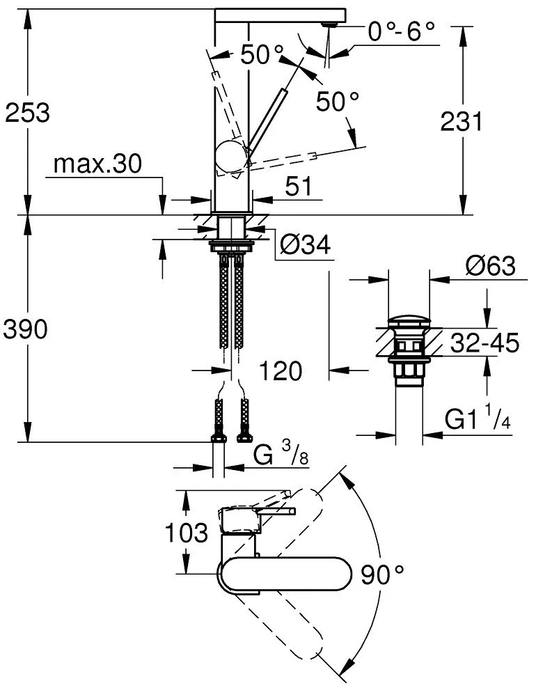 | Дополнительная информация | смеситель оснащен передовыми технологиями Grohe: Grohe SilkMove керамический картридж 28 мм, Grohe StarLight поверхность, Grohe EcoJoy SpeedClean аэратор с ограничением расхода воды 5,7 л/мин, Grohe AquaGuide регулируемый аэратор |