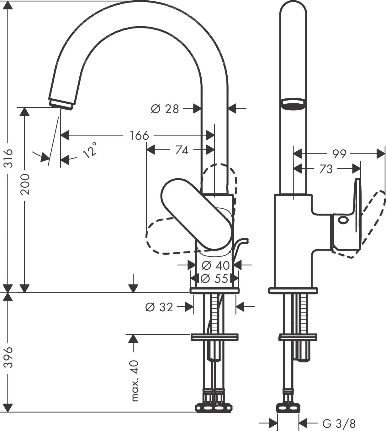 | Дополнительные функции | регулировка угла поворота излива на 2 уровня на 120° или 360° |