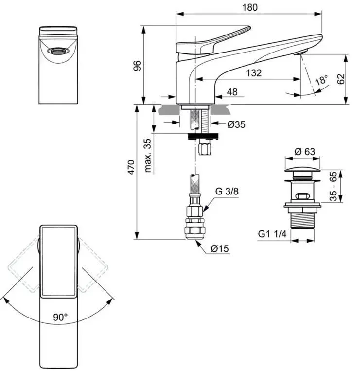 Смеситель Ideal Standard Conca BC764A5 для раковины с донным клапаном