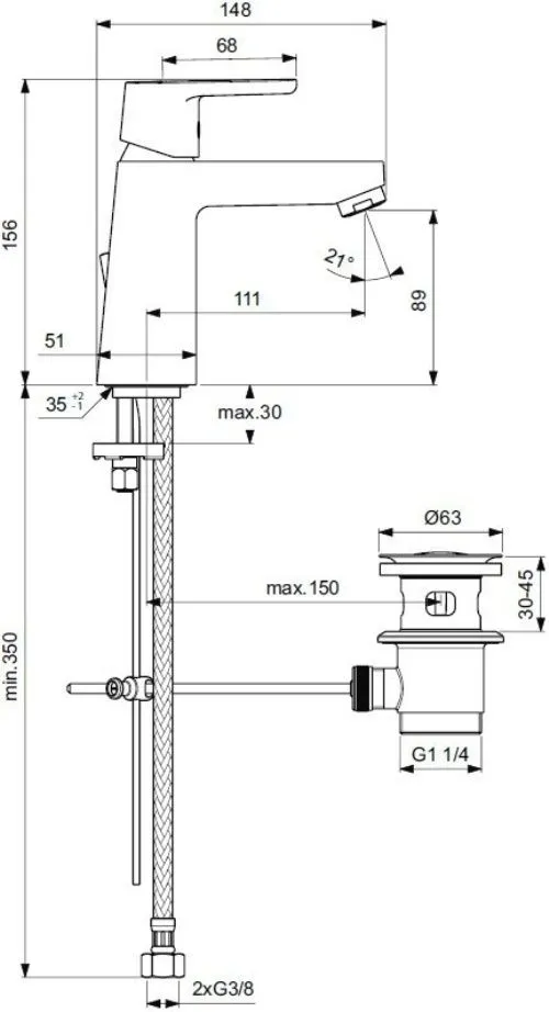 Смеситель Ideal Standard Vito B0455AA для раковины с донным клапаном