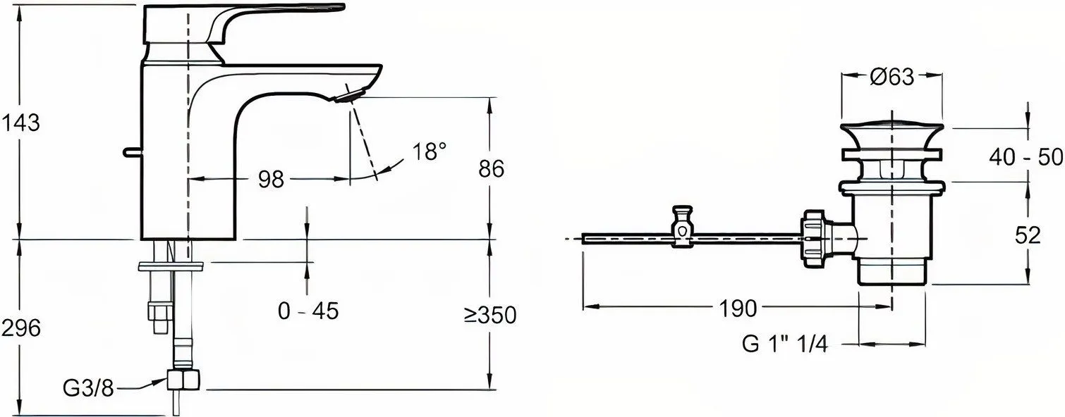 Смеситель Jacob Delafon Aleo+ E72313-CP для раковины с донным клапаном
