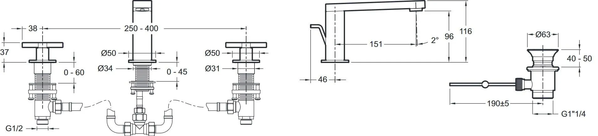 Смеситель Jacob Delafon Composed E73060-3-CP для раковины с донным клапаном