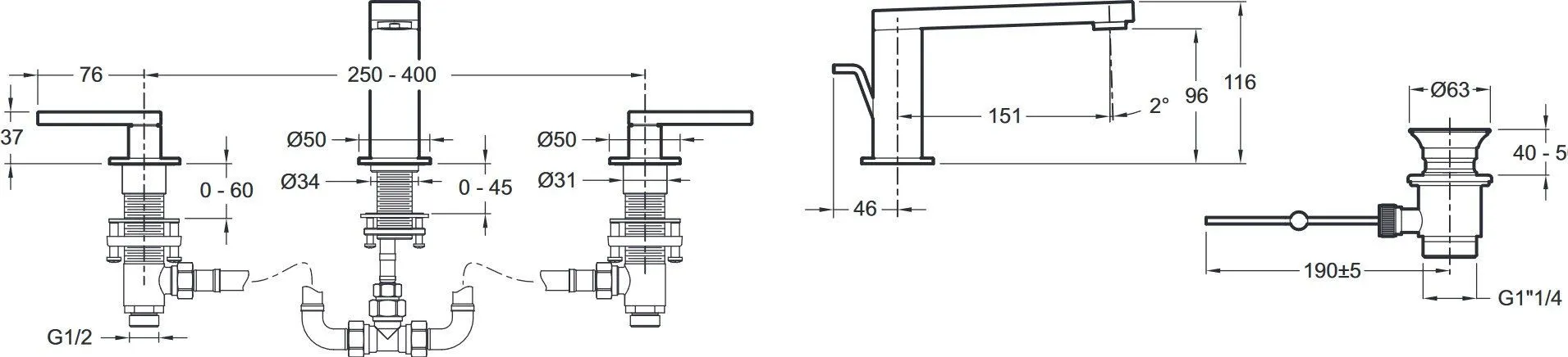 Смеситель Jacob Delafon Composed E73060-4-TT для раковины с донным клапаном