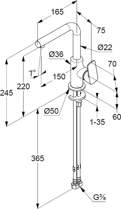 | Высота излива, см | 22 |
