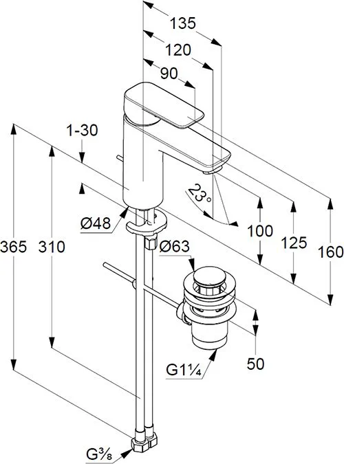 Смеситель Kludi Pure&Style 402900575 для раковины с донным клапаном