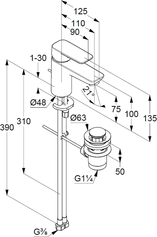 Смеситель Kludi Pure&Style 403820575 для раковины с донным клапаном