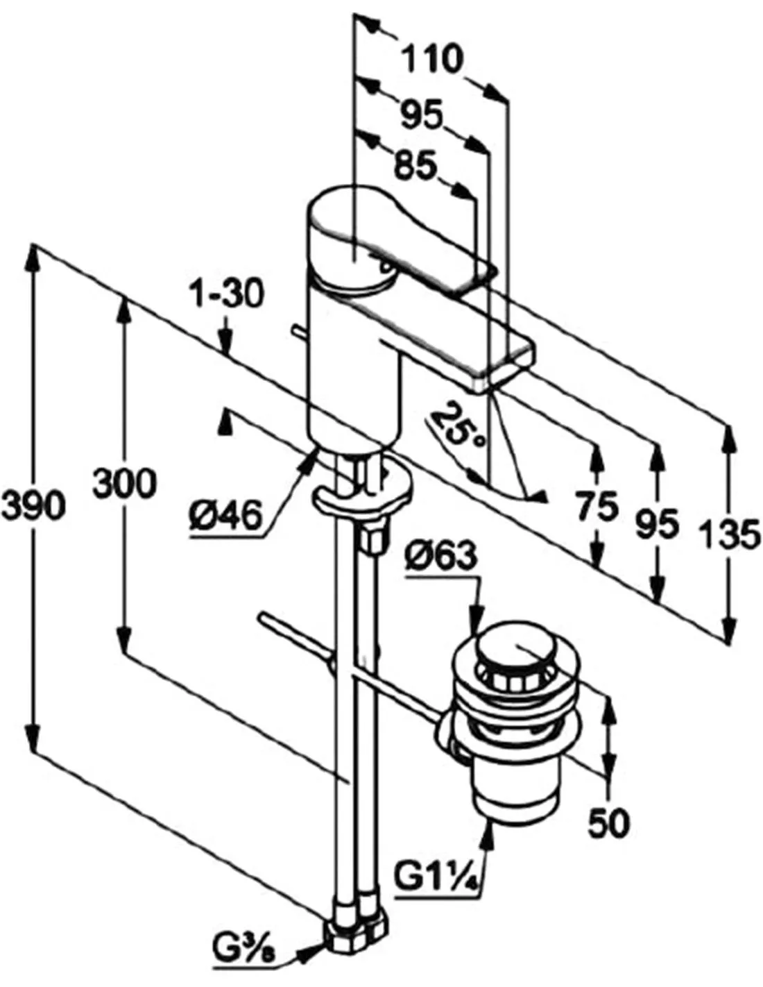 Смеситель Kludi Zenta SL 482600565 для раковины с донным клапаном