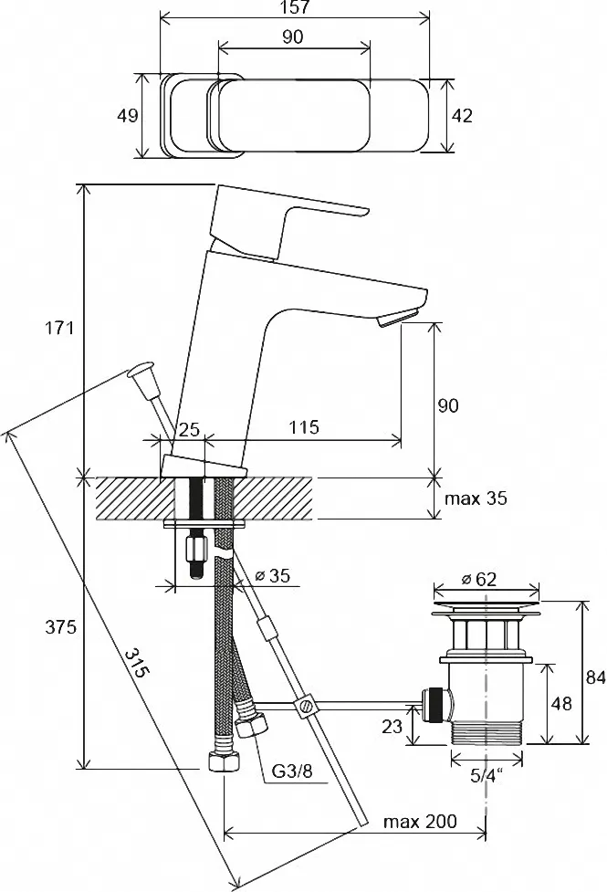 Смеситель Ravak 10° Free TD F 013.00 X070128 для раковины с донным клапаном