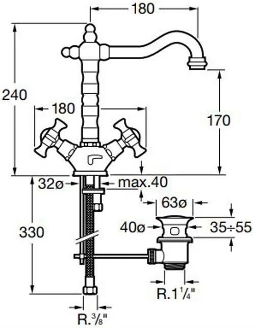 Смеситель Roca Florentina 5072119A0 для раковины с донным клапаном