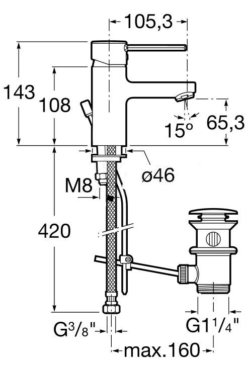 Смеситель Roca Targa 5A3060C0M для раковины с донным клапаном