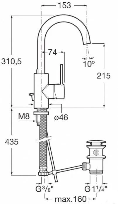 Смеситель Roca Targa 5A4060C00 для раковины с донным клапаном