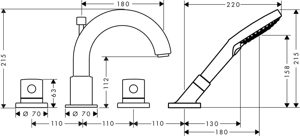 Смеситель Axor Uno 2 38454000 для ванны с душем
