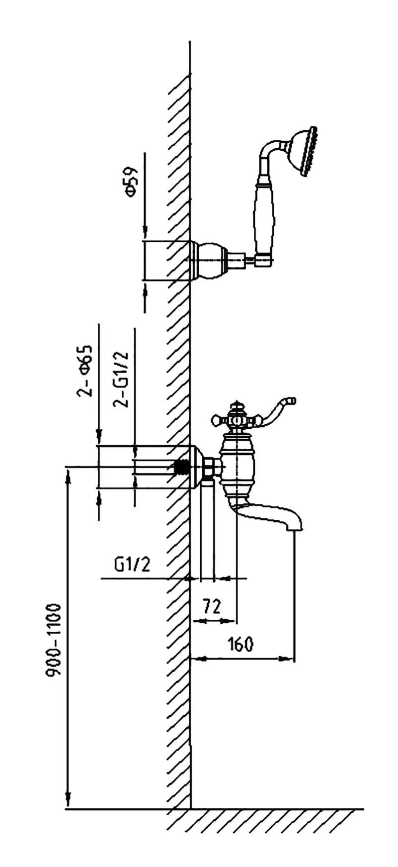 | Оснащение | смеситель / душева лейка / душевой шланг / настенный держатель |