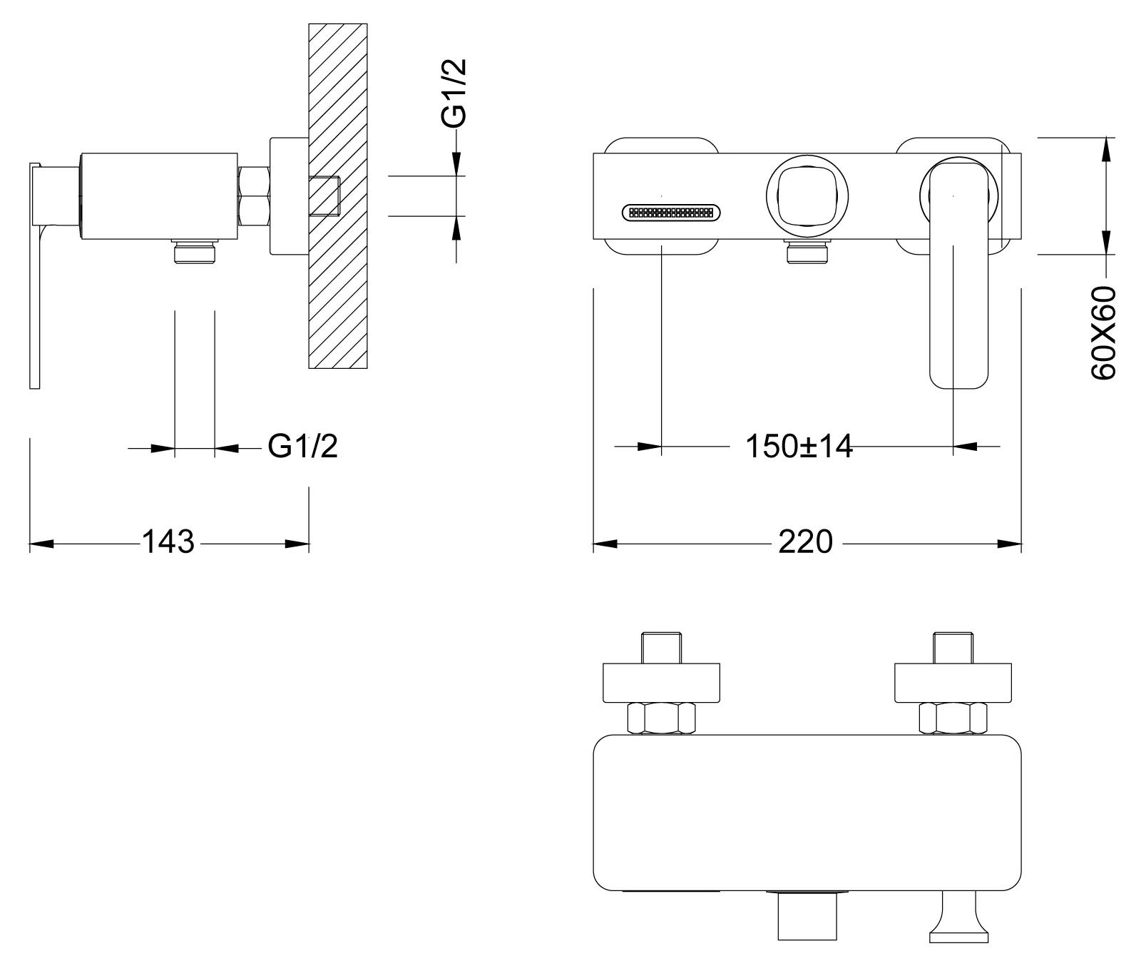 | Оснащение | смеситель / душева лейка / душевой шланг / настенный держатель |