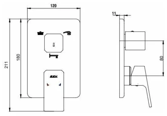 Смеситель E.C.A. Tiera 102167305C1EX-K для ванны с душем внешняя часть
