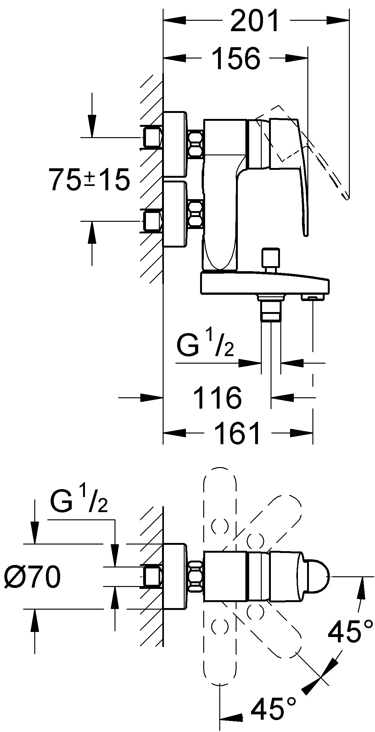 | Дополнительная информация | керамический картридж Grohe SilkMove 46 мм, класс шума I по DIN 4109 |