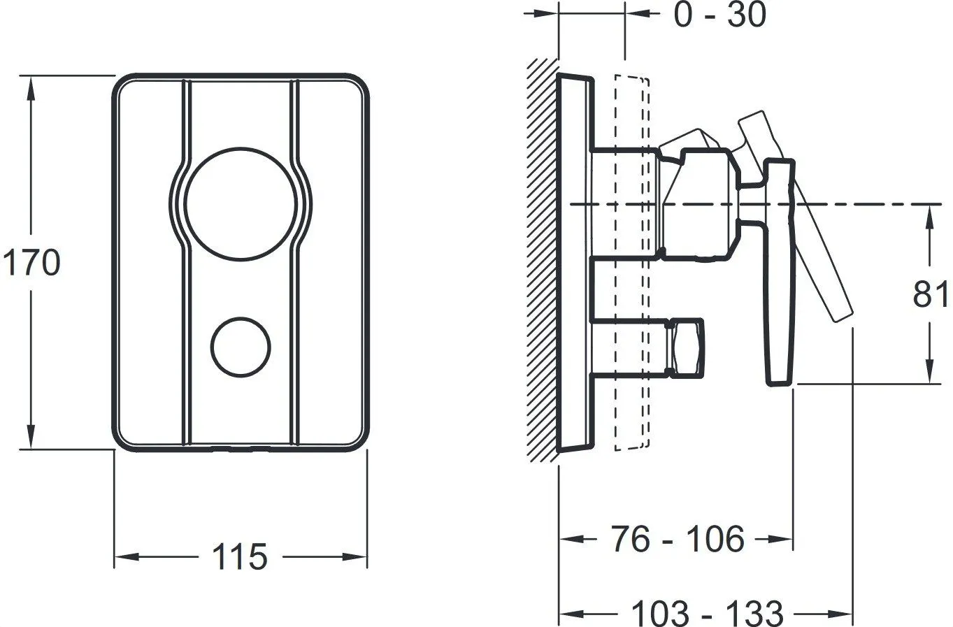 Расположение рычага | Сбоку |