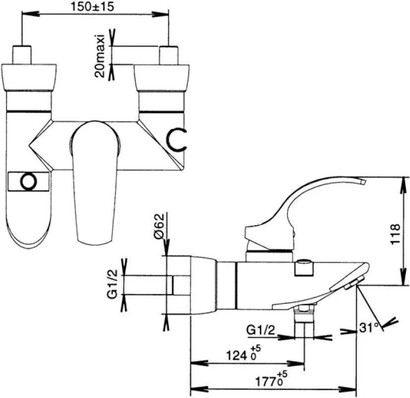 Смеситель Jacob Delafon Salute E71080-CP для ванны с душем