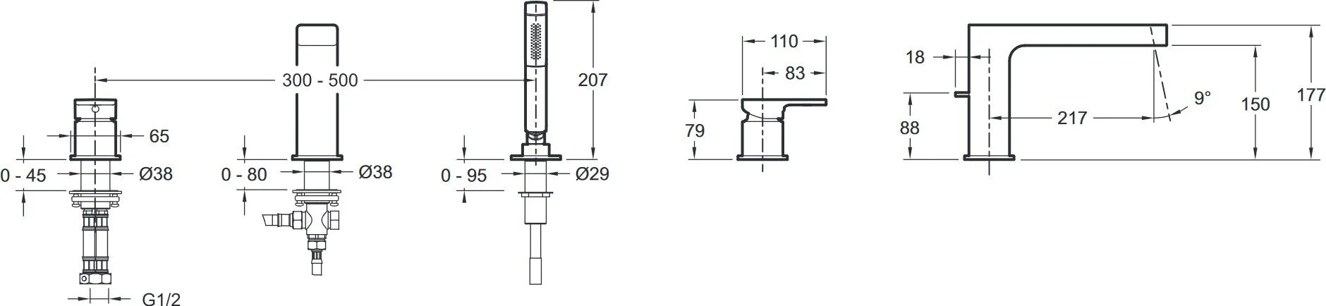 Смеситель Jacob Delafon Strayt E37337-CP на борт ванны