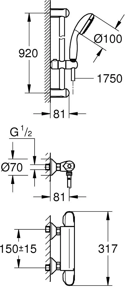 Термостат Grohe Grohtherm 1000 34256004 для душа с душевым гарнитуром