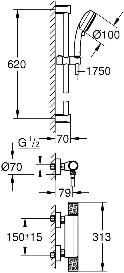 Термостат Grohe Grohtherm 1000 Performance 34783000 для душа с душевым гарнитуром
