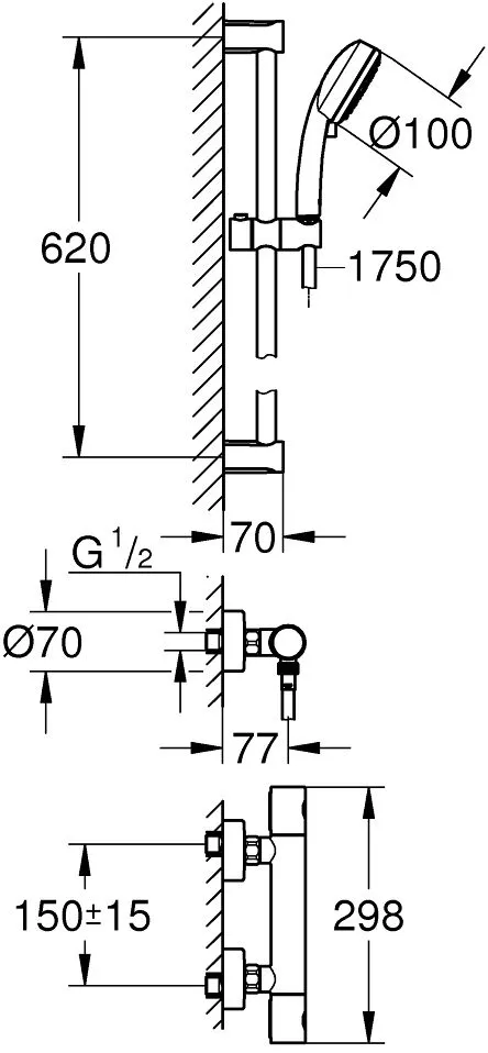 Термостат Grohe Grohtherm 800 Cosmopolitan 34768000 для душа с душевым гарнитуром