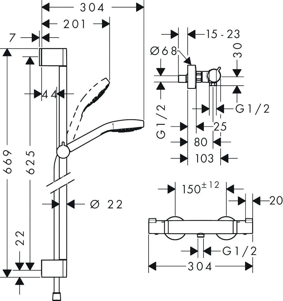 | Дополнительная информация | высота душевой штанги 66.9 см, 3 режима струи ручного душа, диаметр душевой лейки - 11 см |