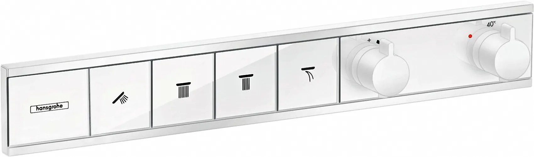 Дополнительная информация | на 4 потребителя воды, для установки необходима скрытая часть Hansgrohe RainSelect для 4 потребителей 15312180, поставляется с кнопками: ручной душ, PowderRain, Waterfall, Rain (широкая струя) |