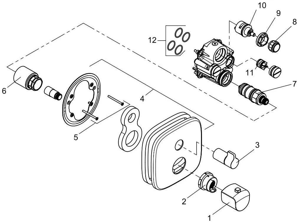 Дополнительная информация | запорный вентиль, переключатель ванна/душ, ограничение температуры при 38°C, расход воды 20 л/мин при давлении 3 бара |